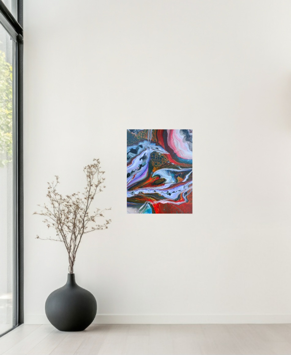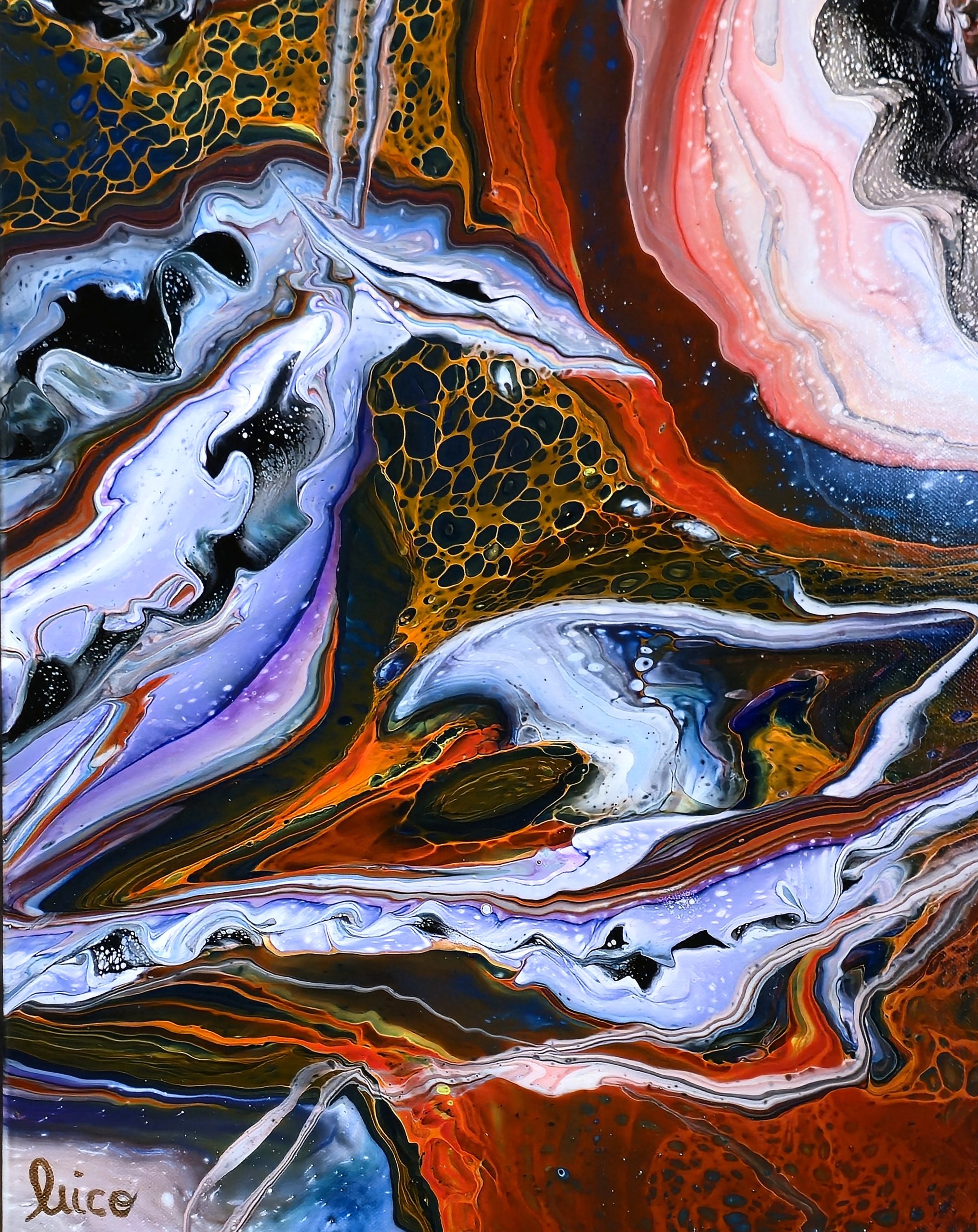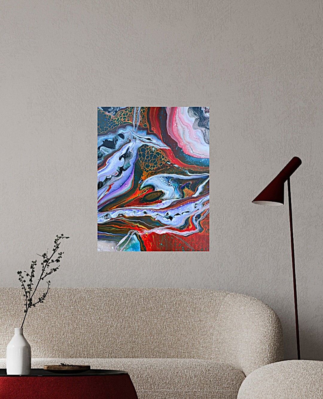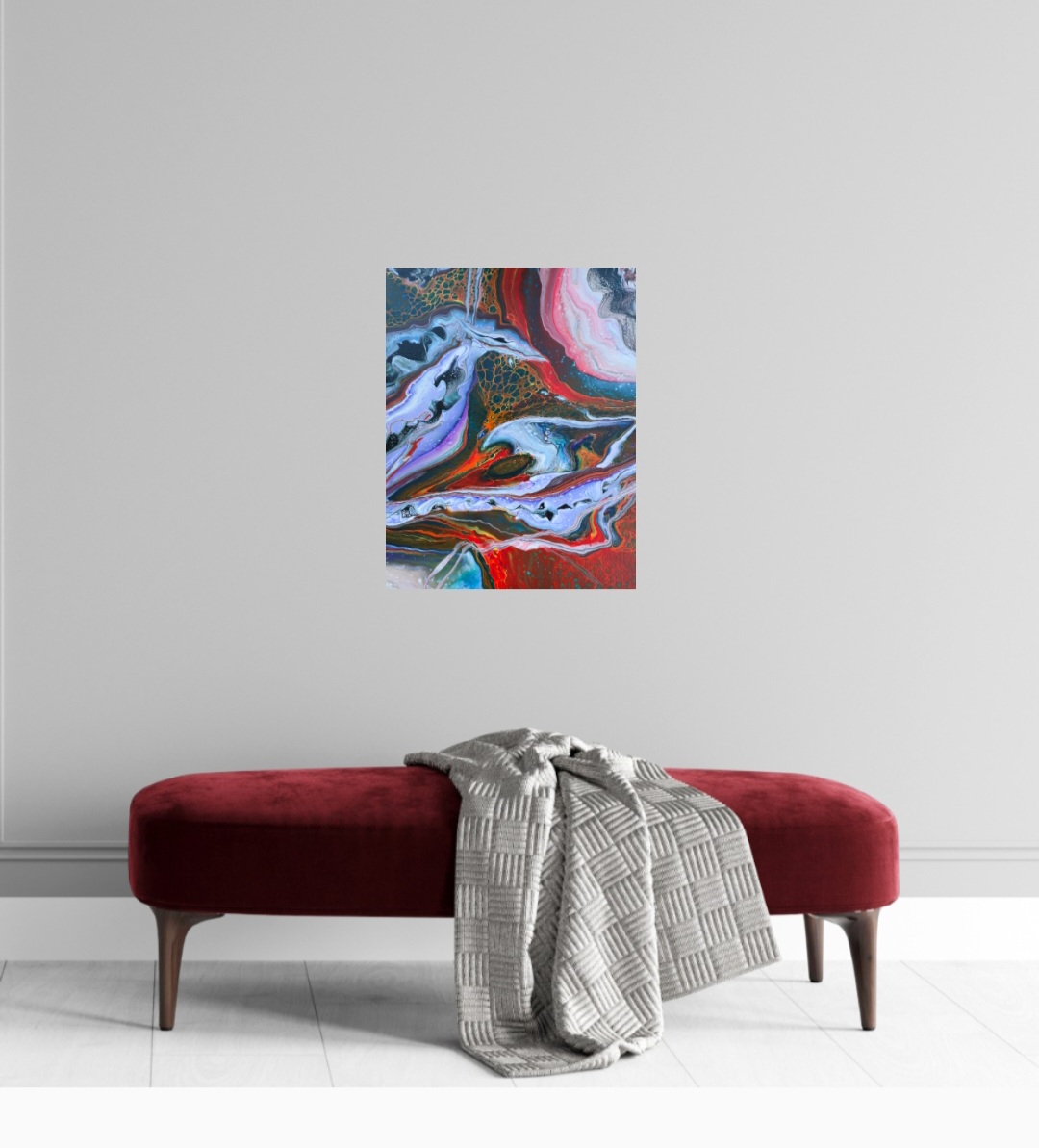 Due to the fluid dynamics of the acrylic pouring process, every piece is entirely unique. It is the only one of its kind in the world, as no two works are—or ever can be—identical.