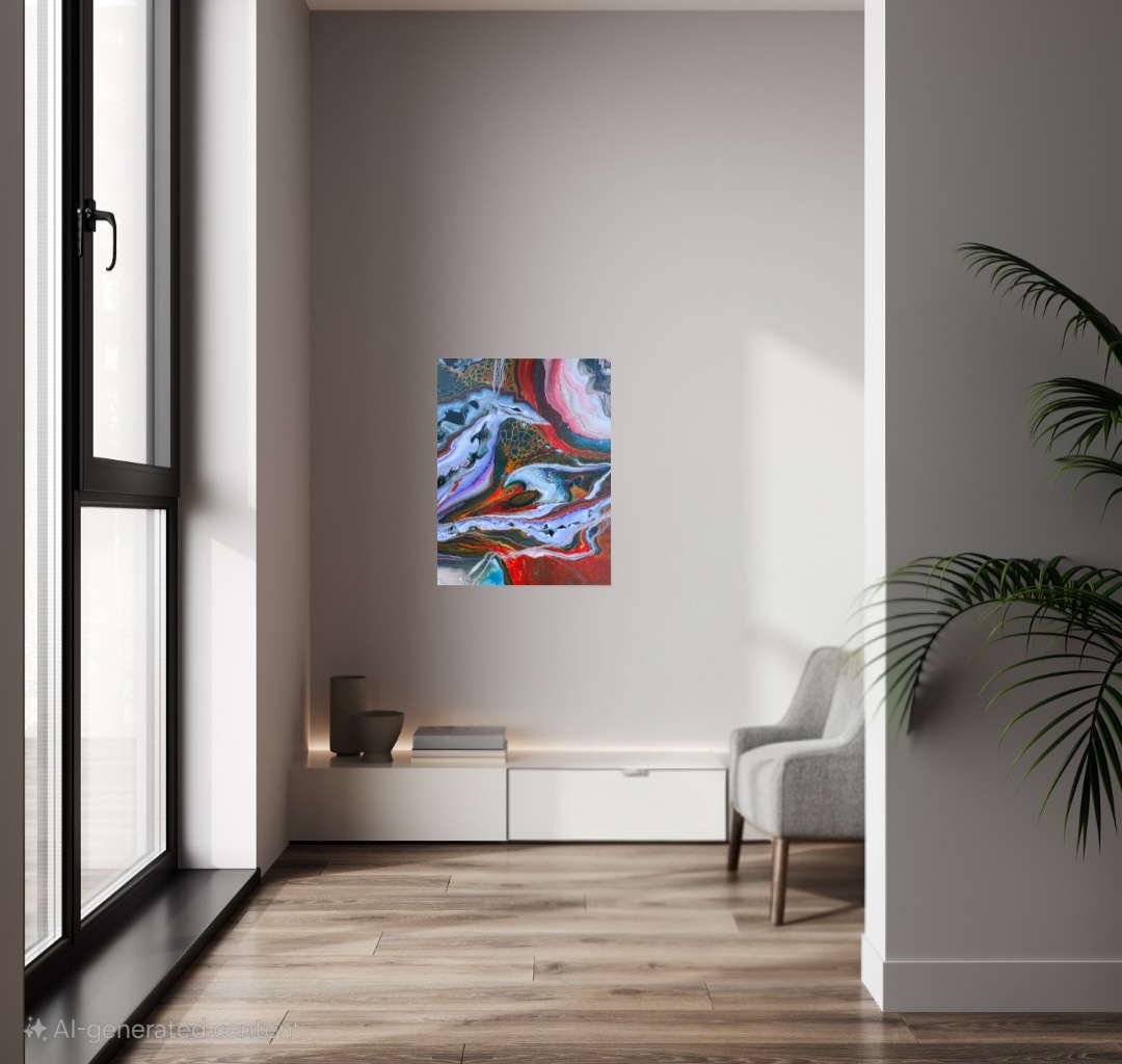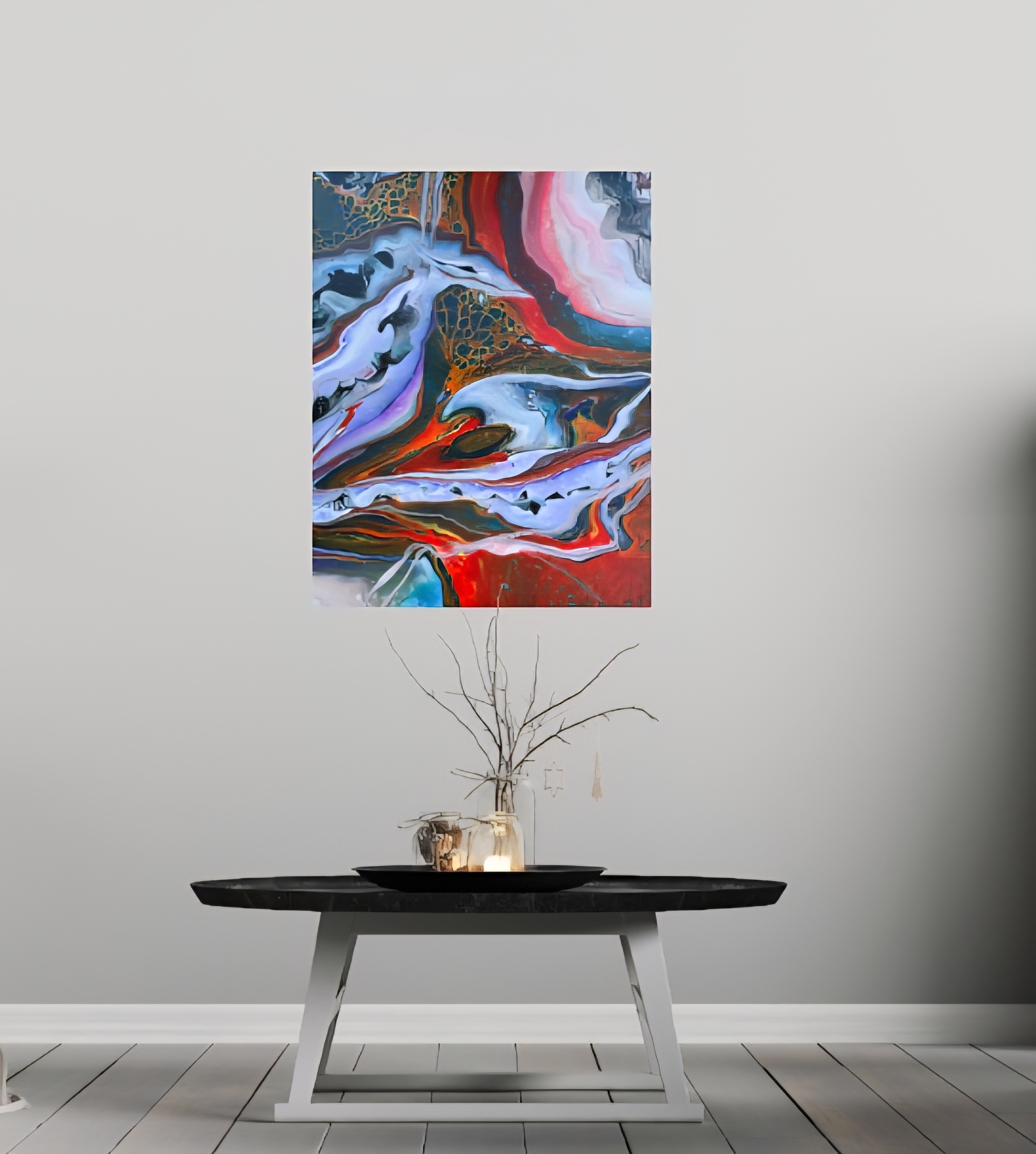 River of Time captures the relentless, beautiful momentum of existence through vibrant fluid textures and cascading colours. A visual meditation on the ever-changing nature of life.